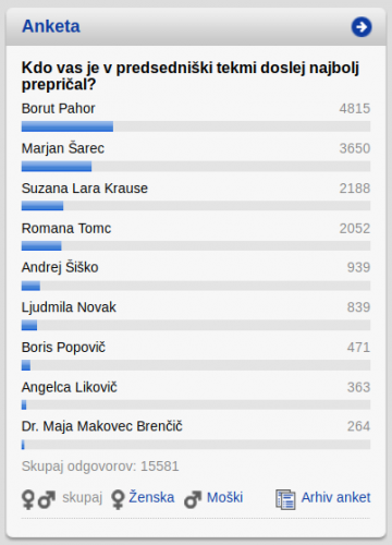Tako pa je izgledal rezultat spletne ankete Večer.com naključnega dne (vmes je nekdo spimpal S.L. Krause):