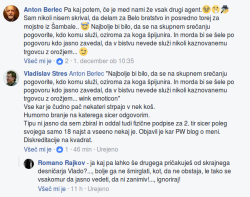Sedaj pa k prvo-omenjenemu. Želel je nekaj komentirati pod mojim blogom (seveda ne prvič), ko sem mu objavi brisal, pa je v fb skupini POGOVORI VSTAJNIKOV o meni bil sposoben napisati naslednje: