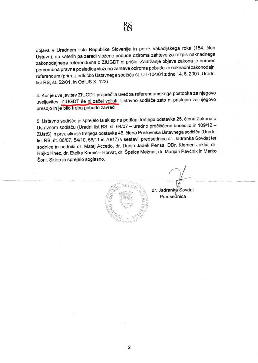 Zavrženj iz tega ali onega (neutemeljenega!) razloga sem od US sicer že navajen, tokratno pa me je v resnici spravilo v dobro voljo. Na drugi strani so namreč Ustavni sodniki in sodnice zapisali, da je uveljavitev ZIUGDT preprečila uvedba referendumskega postopka, zato ZIUGDT še ni začel veljati.
