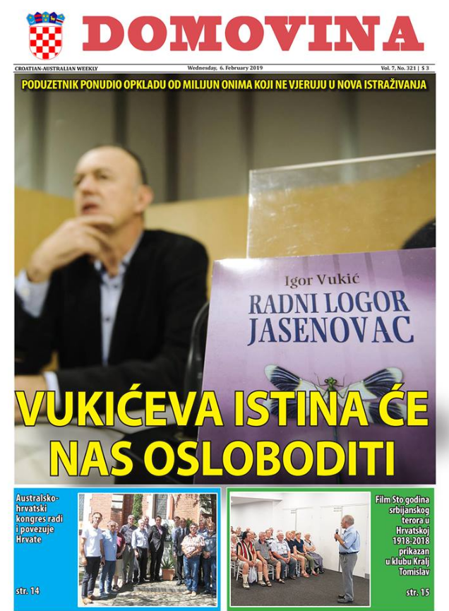 Kot v svoji novi številki poroča časopis Domovina, ki izhaja v Sydneyu, tamkajšnji podjetnik Marko Franović ponuja milijon kun (135.000 evrov) tistemu, ki ovrže zaključke, do katerih so s svojimi raziskovanji prišli posamezni zgodovinarji in avtorji.