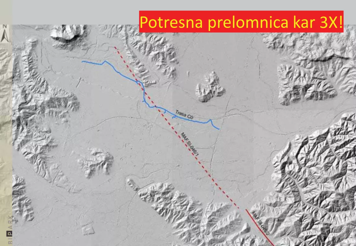 Prelomnica 3x seka ta traso in naj bi bile ob zadnjem večjem potresu celo razpoke na teh njivah - se ve po izročilu prednikov.