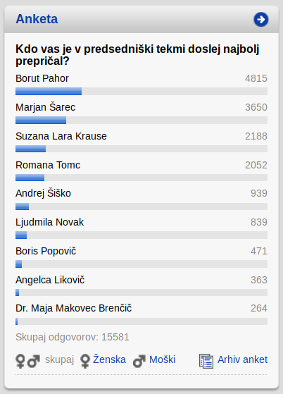 Tako pa je izgledal rezultat spletne ankete Večer.com naključnega dne (vmes je nekdo spimpal S.L. Krause):